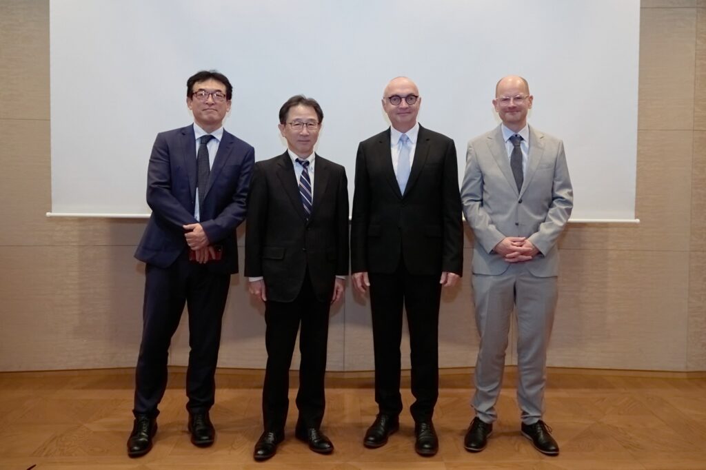 From left to right: Nobuaki Kawahara, Executive Director at ASRA; Keiji Yamamoto, Chairman at ASRA; Luc Van den hove, President and CEO of imec; and Patrick Vandenameele, CEO-elect of imec (Image credit: imec)