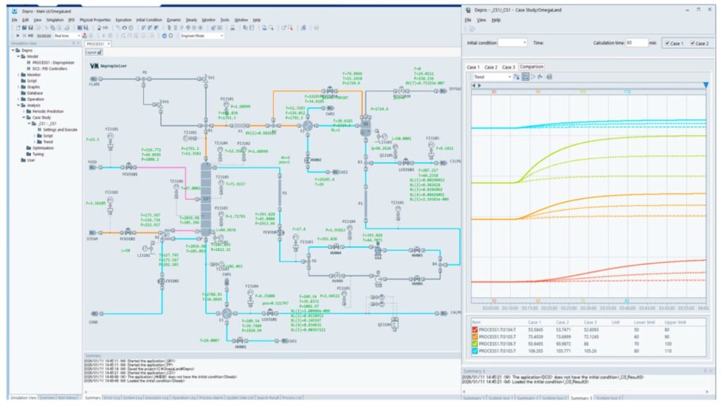 A case study function has been enhanced that allows users to test “what if” scenarios in a virtual plant environment. For such purposes, as saving energy and improving efficiency, users can register up to ten scenarios and simultaneously compare up to three test cases to evaluate changes in operating conditions or control procedures. Thereby, improving testing efficiency and reducing costs.