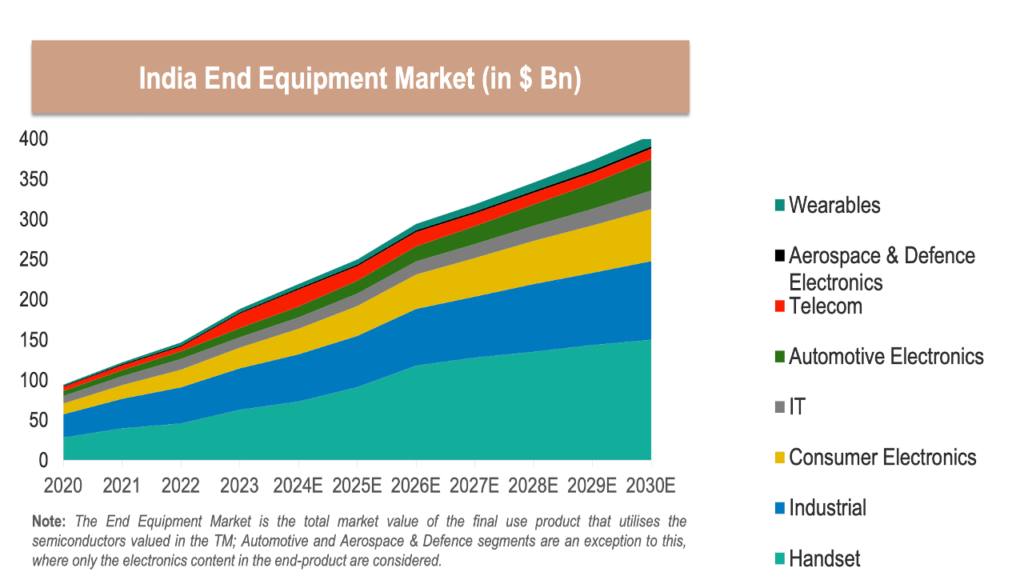 The US$400 billion surge in end-equipment market, which is the total value of finished electronics goods produced or sold in India, is powered by a rapidly maturing semiconductor ecosystem. The IESA report forecasted the India semiconductor market, which is the semiconductor components integrated into finished products, will cross the US$100 billion threshold by 2030.